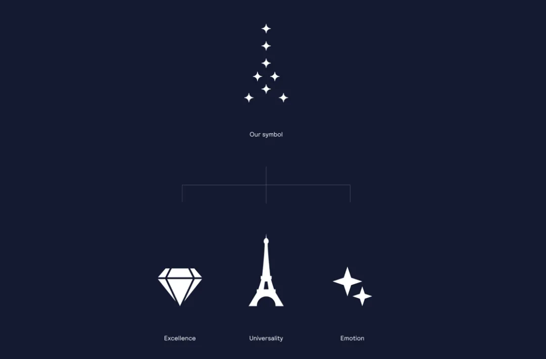 据深圳品牌策划设计公司比高创意了解,全新的品牌标识在造型上打破了传统,用星星元素对铁塔的经典形态进行了抽象化演绎。此次品牌形象升级不仅是对埃菲尔铁塔本身的致敬,更是一次成功的品牌战略表达,展现了其在新时代下的独特魅力。