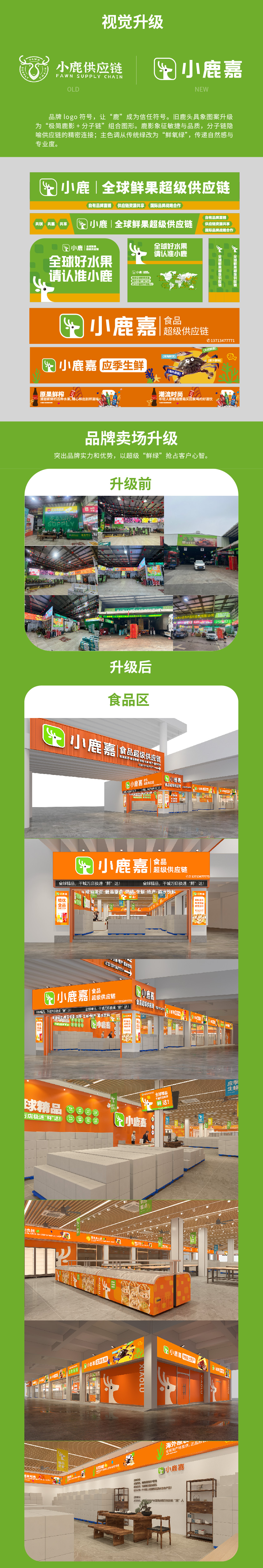 小鹿嘉深耕水果农产品供应链近30年,曾以“华南最大批发商”的身份占据行业头部地位。然而,随着消费升级与Z世代崛起,品牌面临多重困境:消费者对“批发商”的刻板印象停留在“低价走量”,无法传递“品质+头部”的品牌溢价;视觉体系陈旧——旧LOGO以写实鹿头搭配绿底,设计语言与“精品超市”“网红生鲜”等新渠道格格不入;业务涵盖全球直采、自有品牌、商超配送,但缺乏统一的品牌叙事,导致B端客户与C端用户认知模糊。