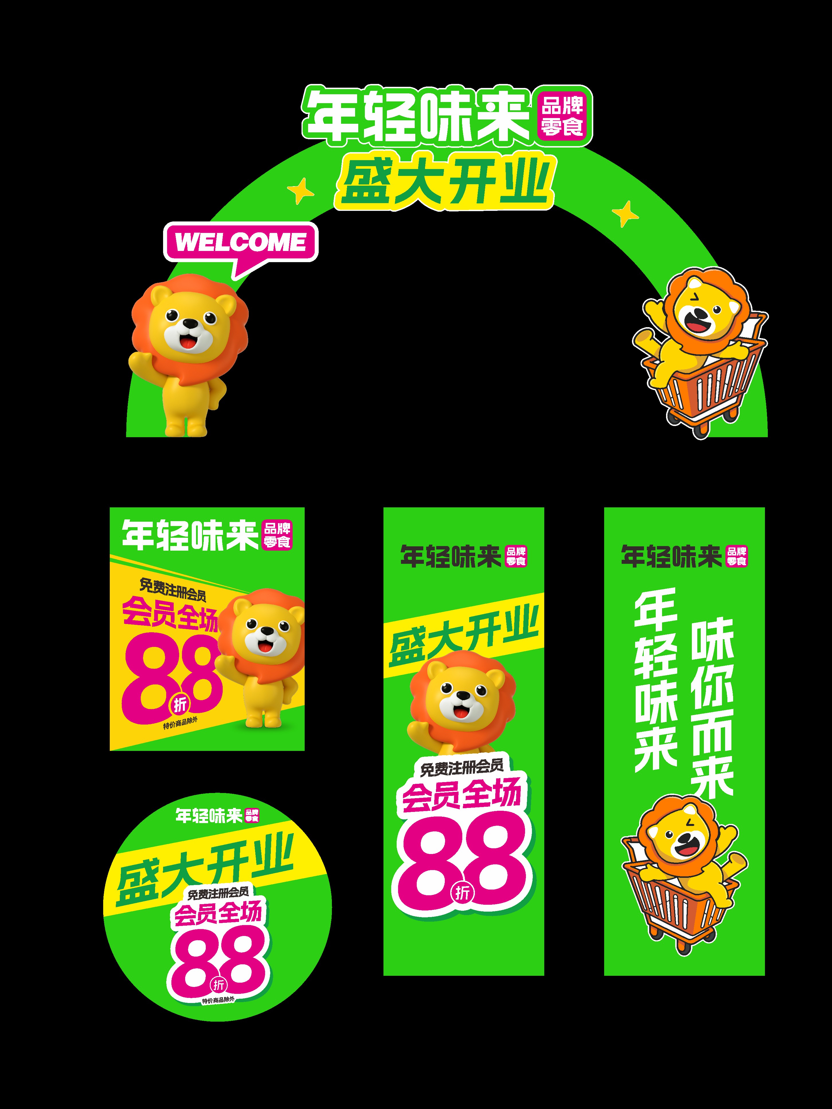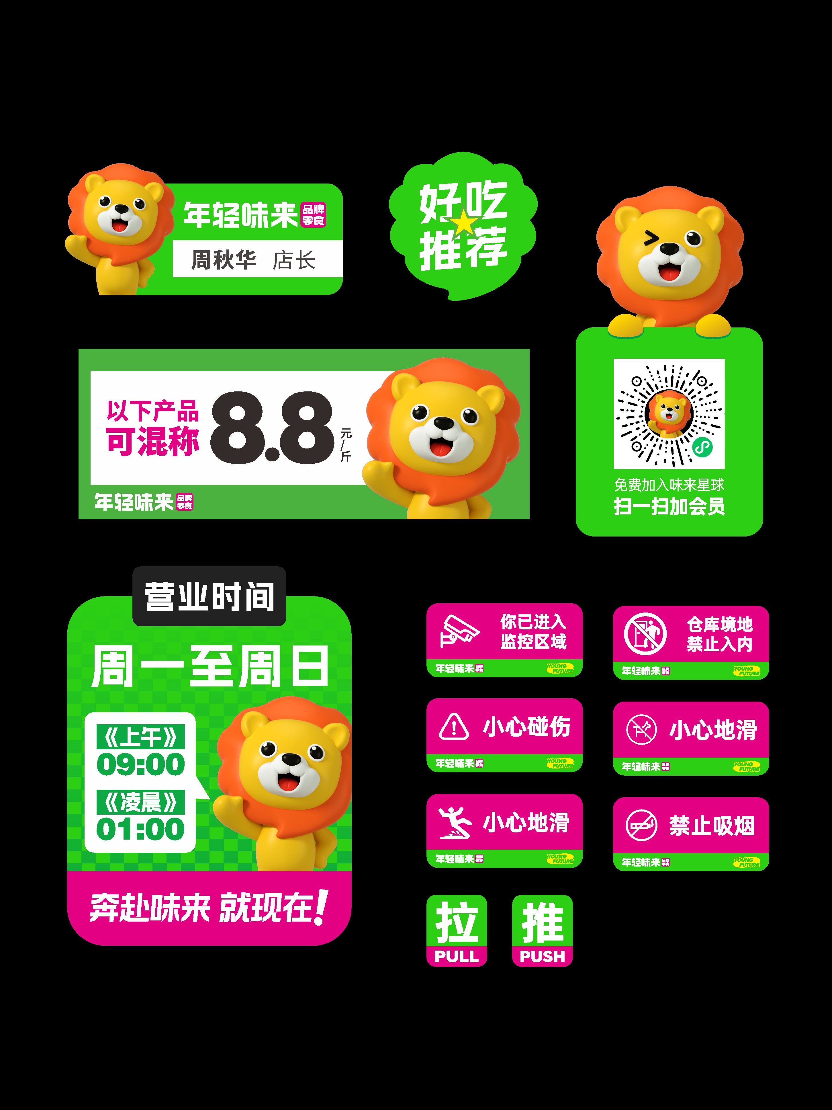 品牌策划设计理念,重在思考如何让年轻味来在众多的零食品牌中脱颖而出?从品牌副标题、战斗口号、品牌LOGO、色彩选择、IP创新、空间创意等数十个项目小细节中精心雕琢,凸显“健康、品质、便宜、好玩、好购”,让品牌一出街,就可以在厮杀激烈的零食赛道,抓住消费者眼球,火速出圈。